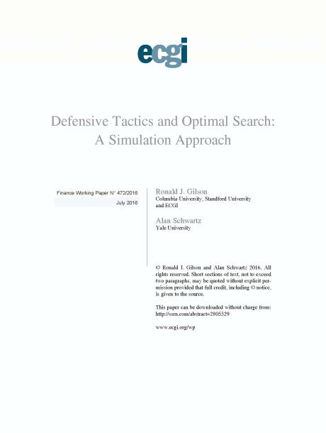 to answer because of the qualitative nature of defensive tactics: Is a poison pill more or less privately efficient than a staggered board? What are the welfare consequences of combining a pill with a staggered board or a supermajority voting requirement? In this paper, we write a search equilibrium model of the market for corporate control and solve it by simulating plausible parameters for the variables of interest. Because we specify the number of ex ante efficient acquisitions that could be made, we can estimate market efficiency ? the ratio of made matches to good matches ? under legal regimes that are more or less friendly to defensive tactics. Also, we argue that the common metric among defensive tactics is time: the ability of various tactics to delay bid completion and thus reduce bidder, and thereby increase target, returns. We have two important results: First, strong defensive tactics reduce market efficiency significantly. Our simulations suggest that approximately a $100 billion in deal value is lost each year in consequence of these tactics. Simulations are only suggestive and our simulated model likely overstates the welfare loss. Nevertheless, the result that defensive tactics cause economically significant welfare losses would stand even if our magnitude estimate is halved. Second, the defensive tactics level that maximizes target shareholder welfare is materially higher than the level that maximizes social welfare. These results